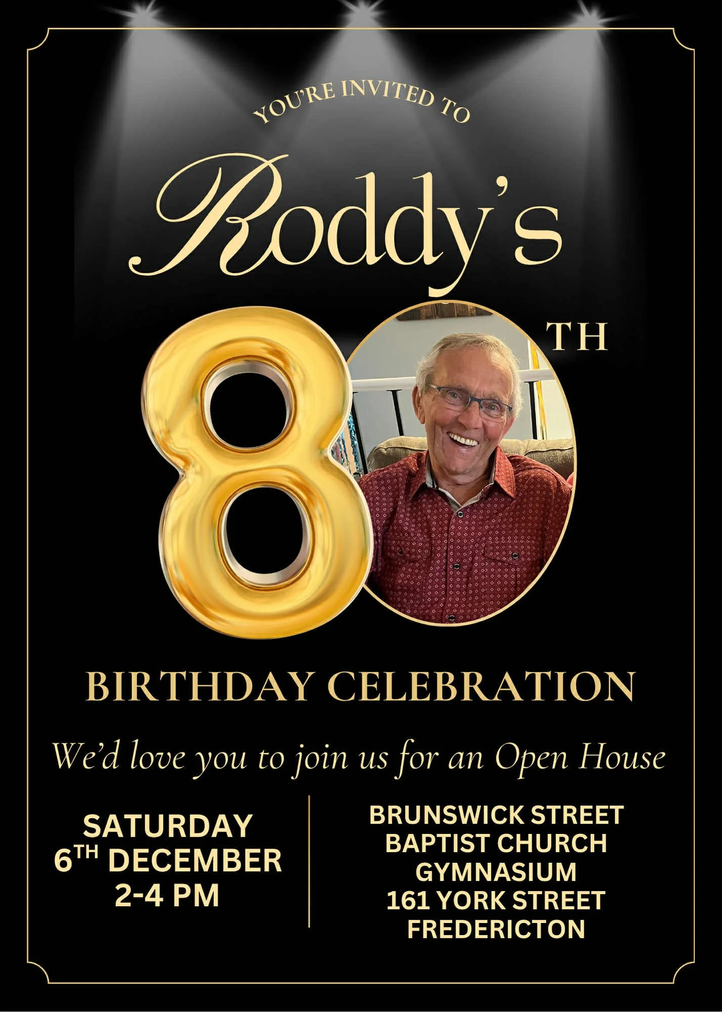 You are warmly invited to join us as we celebrate a very special milestone — Roddy’s 80th birthday!