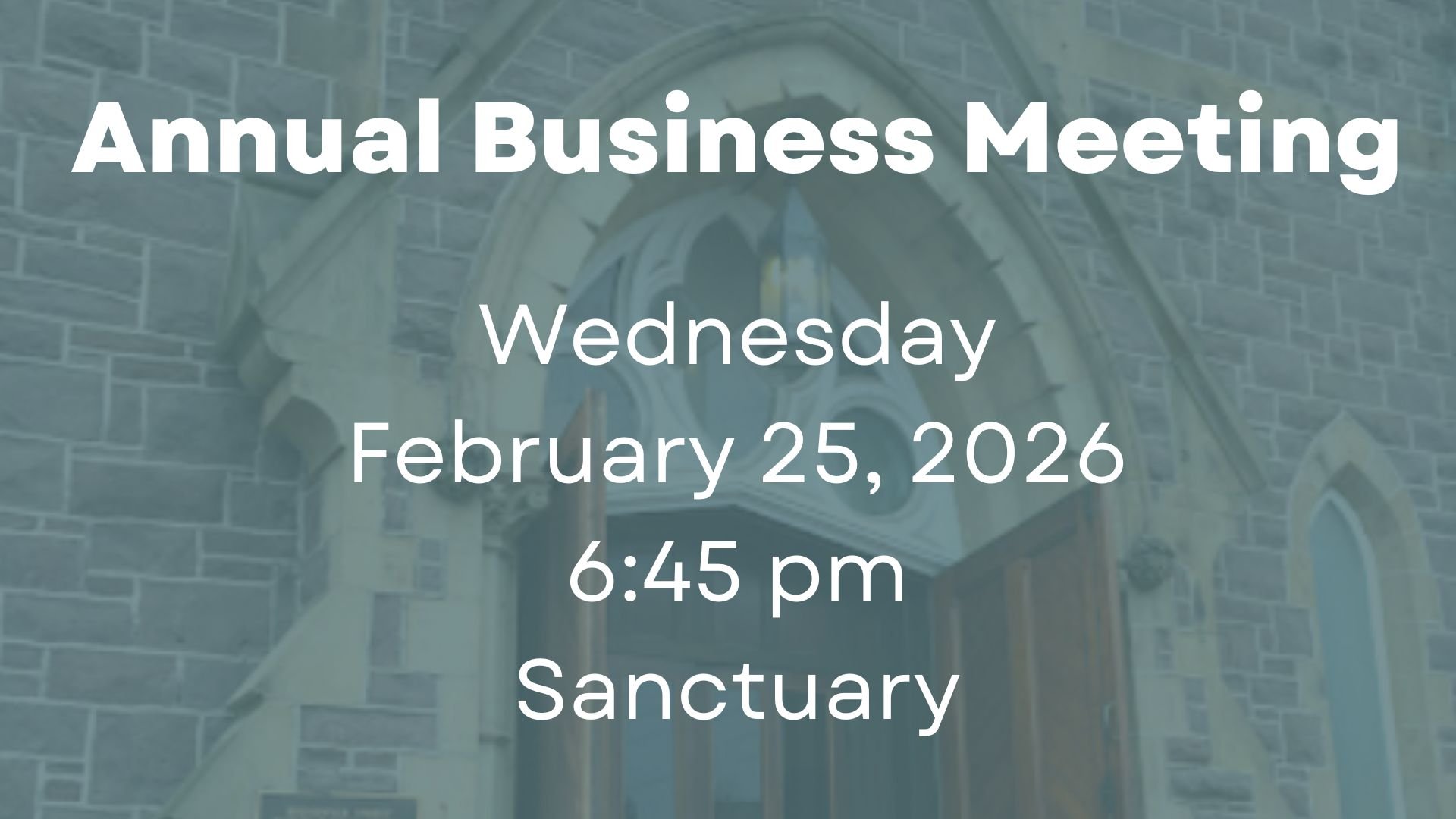 Dr. Calvin Smith, our Moderator, invites the Brunswick Street Baptist Church congregation to attend the Annual Business Meeting (ABM) on Wednesday, February 25, 2026, at 6:45 pm in the sanctuary. To attend online, please contact Naomi at naomi.phillips@bsbc.nb.ca for your Zoom link. In the event of a storm, the meeting will be held on Thursday, February 26, 2026, at 6:45 pm.